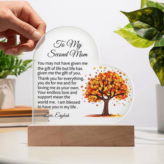 To My Second Mom Acrylic Heart Plaque