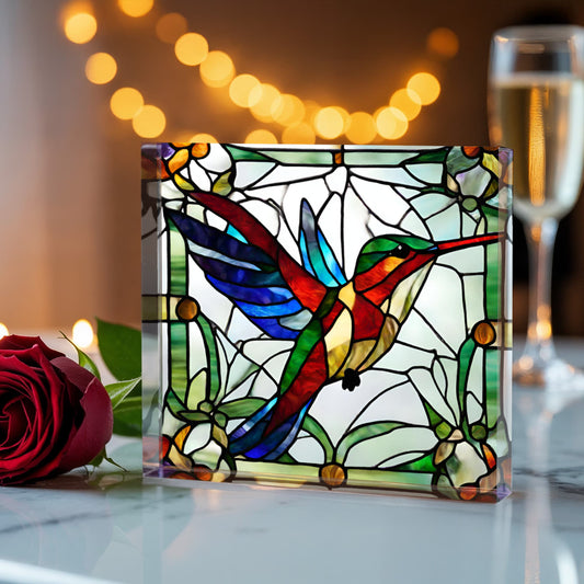 Colorful Hummingbird Acrylic Plaque, Stained Glass Decor, Nature Lover Gift, Home Decoration, Vibrant Art Block, Bird Decor