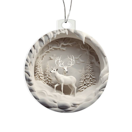 Winter Deer Acrylic Ornament - 3D Effect Decoration for a Festive Touch - Perfect for Holiday Season Dcor