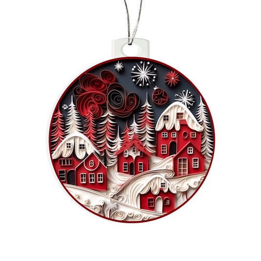 Red Christmas Village Acrylic Ornament