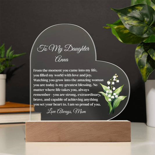 Personalized Daughter Lighted Acrylic Heart Plaque with Birth Flower