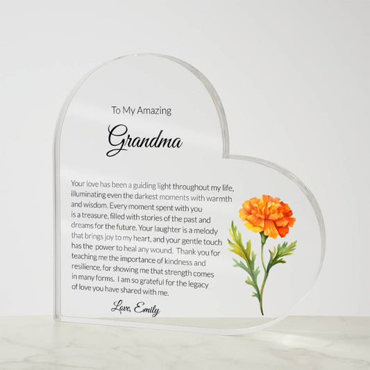 Grandma Acrylic Heart Plaque with personalized birth flower