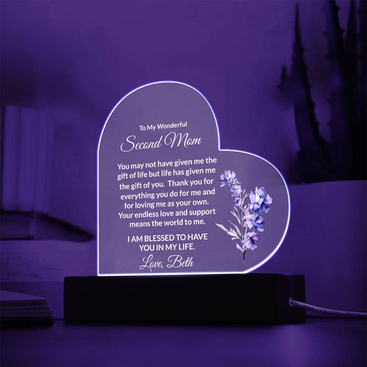 Second Mom Lighted Plaque Gift with Personalized Birthflower