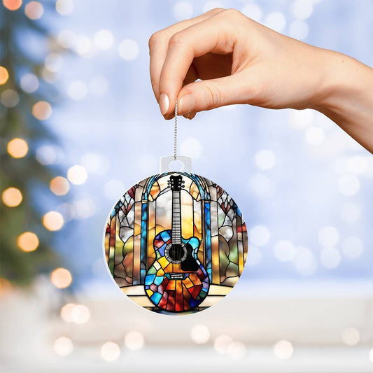Guitar Faux Stained Glass Acrylic Christmas Ornament