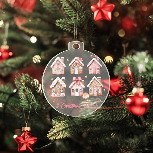 Pink Gingerbread Wishes Acrylic Christmas Ornament