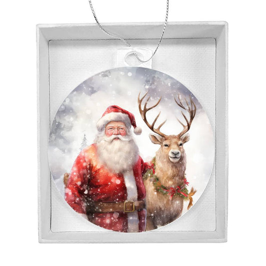 Santa Reindeer Acrylic Christmas Ornament