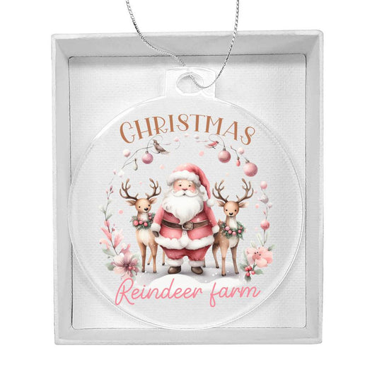 Pink Christmas reindeer farm Acrylic Christmas Ornament