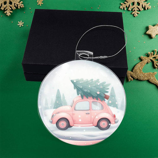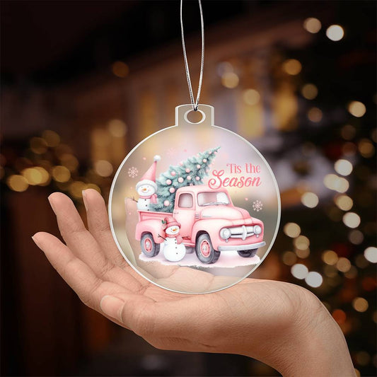 Pink Xmas Tree Pickup Truck Tis the Season Acrylic Christmas Ornament
