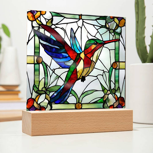 Hummingbird Acrylic Plaque, Gift for Mom or Grandma, Christmas, Birthday, Bird Lover Gifts, Stained Glass Art, Hummingbird Gift, Nature lover