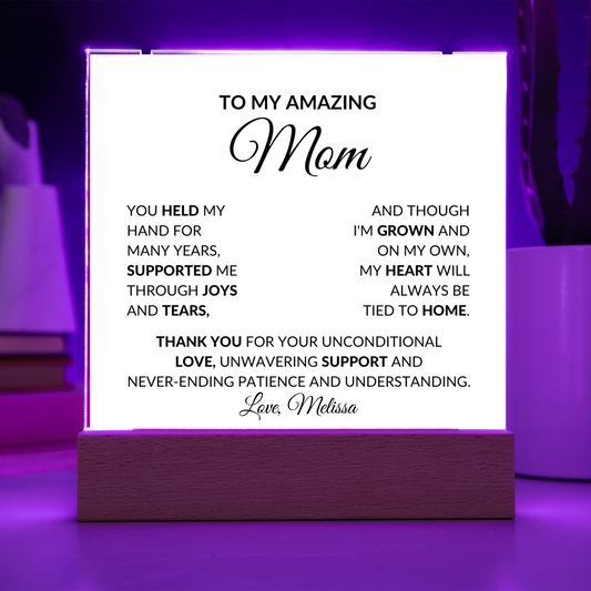 To My Mom Heart Necklace with Lighted Necklace Holder Plaque Gift Set