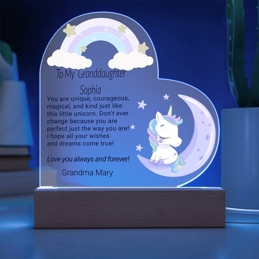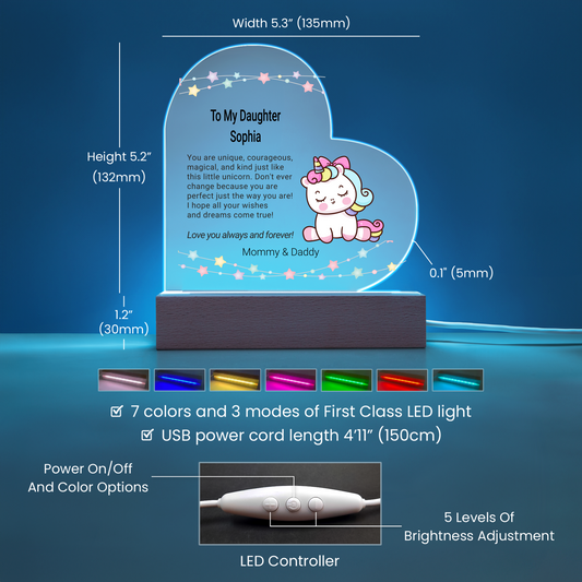 Daughter Unicorn LEd Heart Nightlight Acrylic Plaque