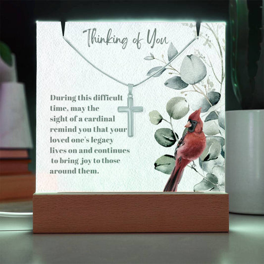 Cardinal Remembrance Cross Necklace and Acrylic Memorial Plaque