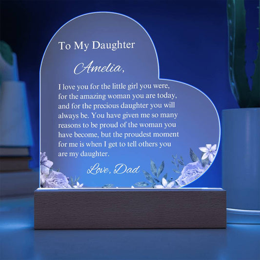 Daughter Acrylic Heart Plaque LED