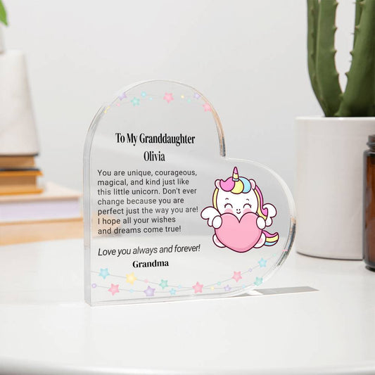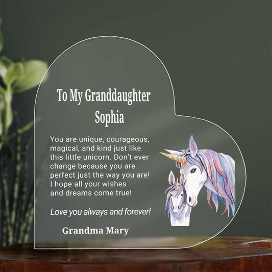 Granddaughter Unicorn Heart Plaque Gift