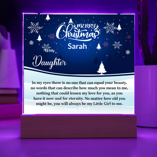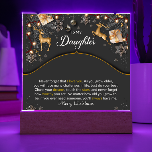 Daughter Christmas LED Acrylic Heart Necklace and Plaque Gift Set