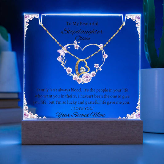 Stepdaughter LED Acrylic Heart Necklace & Plaque Gift Set