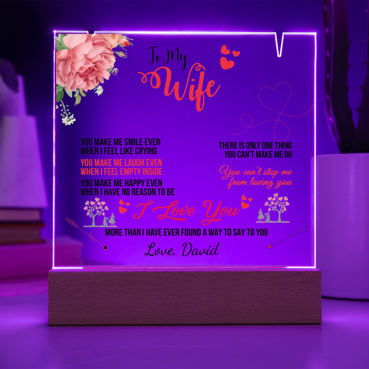 Wife Keepsake LED Acrylic Heart Necklace & Plaque