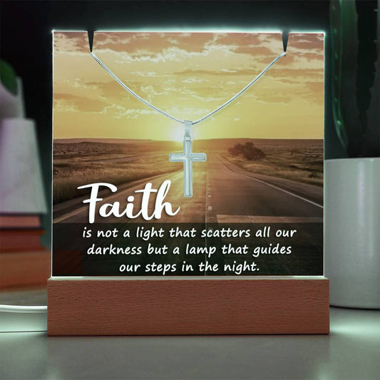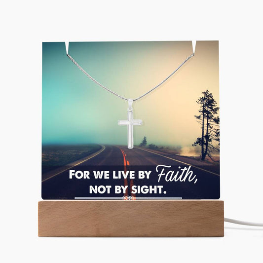 For We Live by Faith Religious Plaque & Cross Gift Set