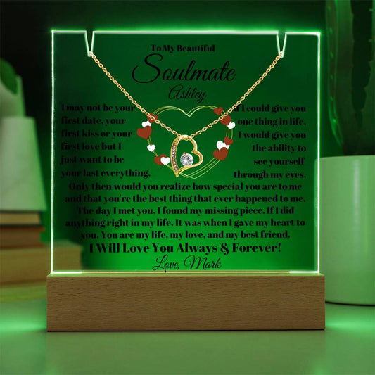 Soulmate Acrylic Heart Necklace & Plaque Gift Set