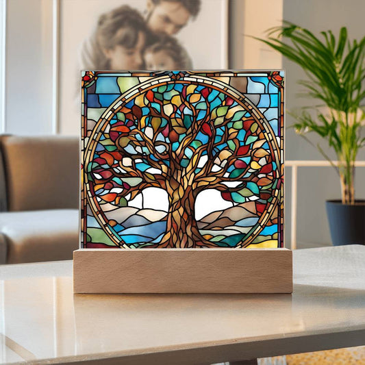 Mom LED Acrylic Heart Necklace & Plaque Gift Set