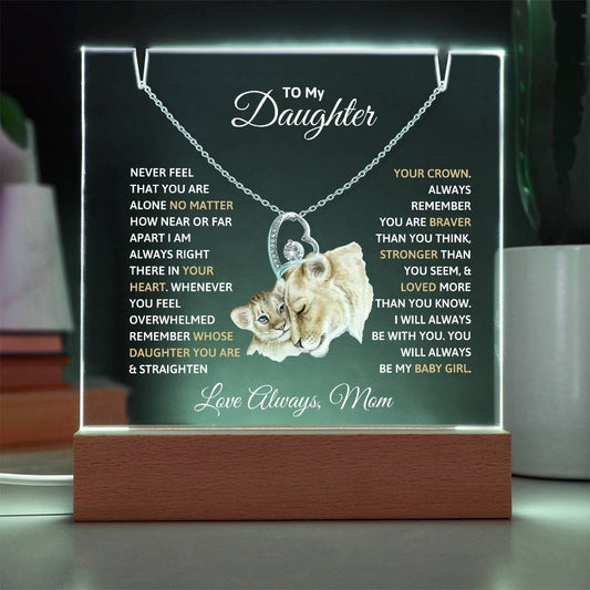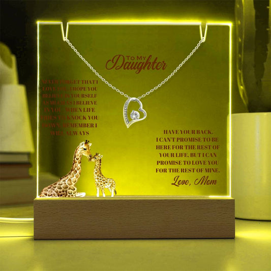 Daughter from Mom LED Acrylic Heart Necklace & Plaque Gift
