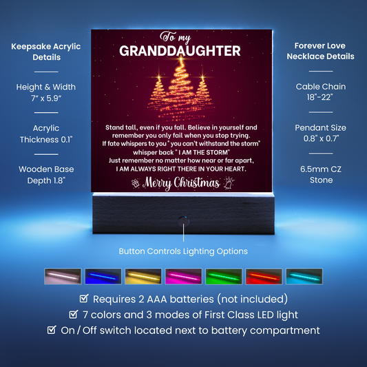 Granddaughter Christmas LED Acrylic Heart Necklace & Plaque Gift set
