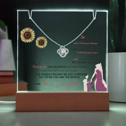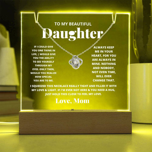 Daughter from Mom Acrylic & Love Knot Necklace Gift Set