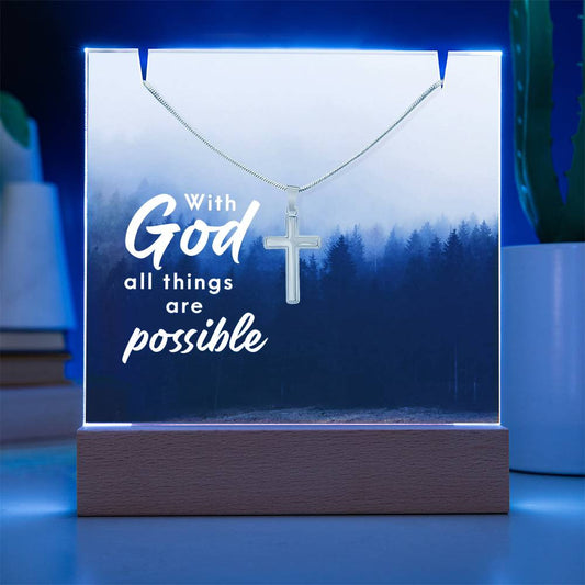 With God All Things Are Possible Religious Plaque & Cross Gift Set