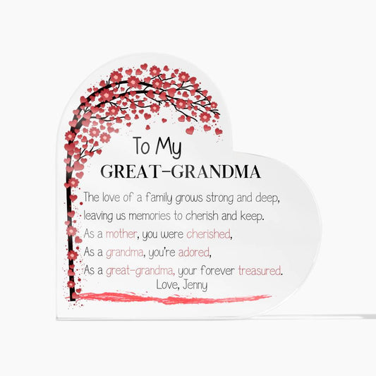 Mother's Day Gift for Great-grandma, Grammy Gift, Heart Acrylic PlaqueRegular price $44.95Regular priceUnit price / per-