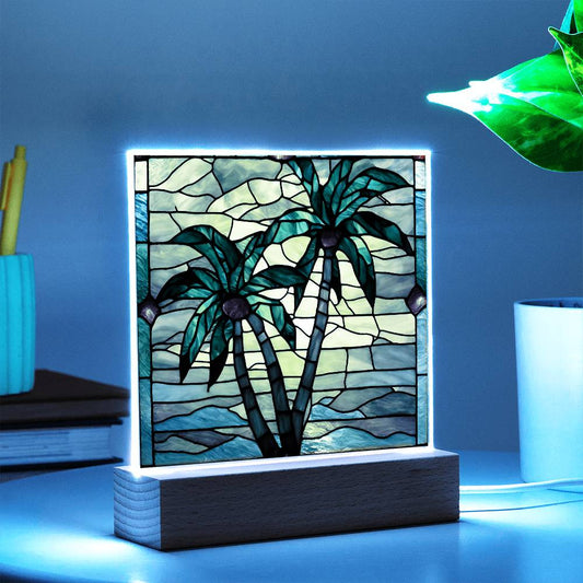 Palm Trees Faux Stained Glass Acrylic Square PlaqueRegular price $49.95Regular priceUnit price / per-