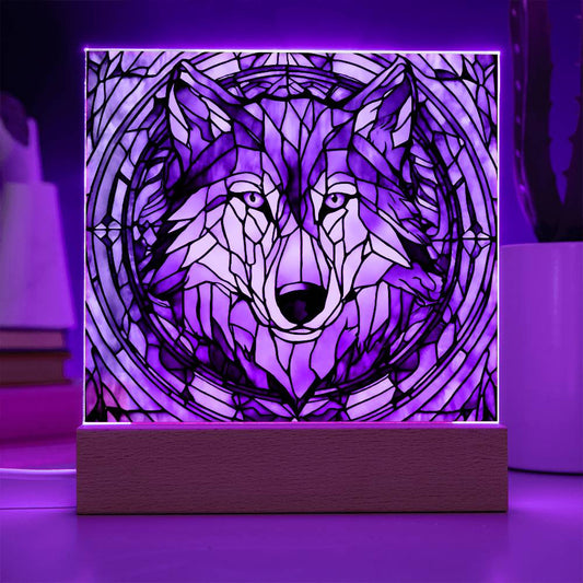 Stained Glass Wolf Acrylic Plaque - Decorative Faux Window Art for Home or Office