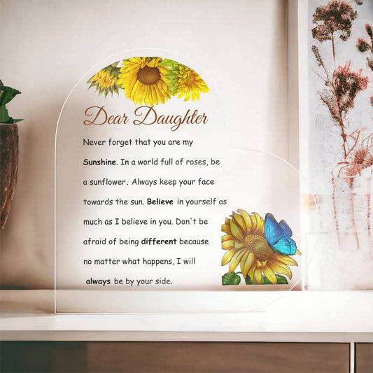 Daughter Be A Sunflower Acrylic Heart PlaqueRegular price $39.95Regular priceUnit price / per$79.90Sale price $39.95Sale
