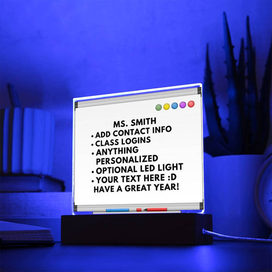 Personalized Teacher Whiteboard Acrylic Sign For Classroom - Optional LED LightRegular price From $39.95Regular priceUnit price / per-