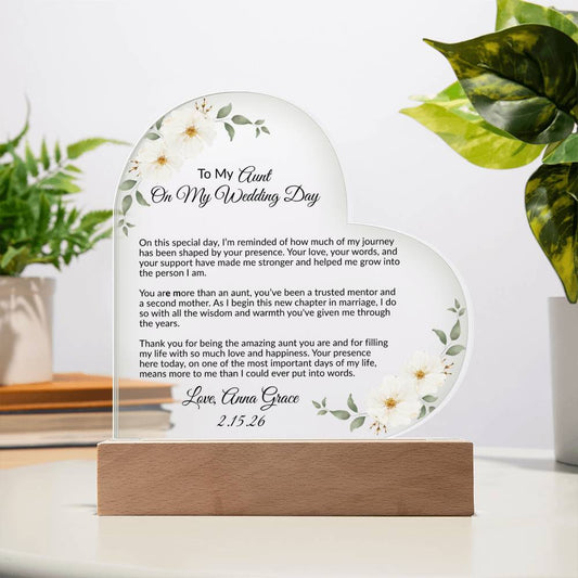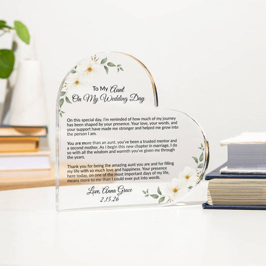 To My Aunt on My Wedding Day Acrylic Heart Plaque