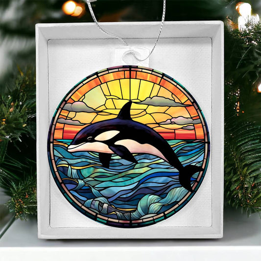 Handcrafted Stained Glass Orca Christmas Tree Ornament