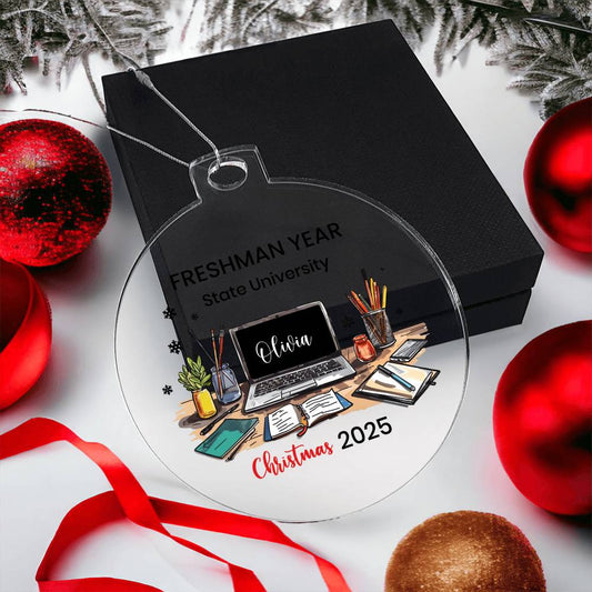 Personalized College Ornament, Freshman Year Christmas Decor, Custom College Gift, College Keepsake Ornament, Unique Student Gift, Acrylic Ornament
