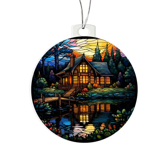 Handcrafted Stained Glass Lake House Christmas Ornament - Perfect for Decorating Your Holiday Home