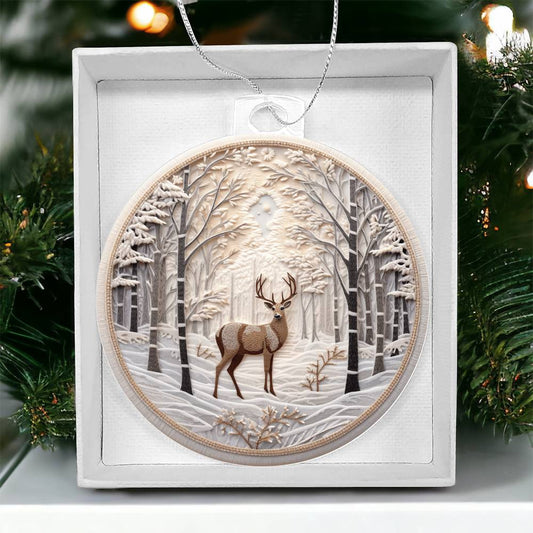 Snowy Deer Christmas Ornament - Festive Holiday Decoration