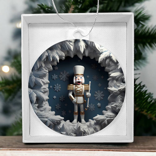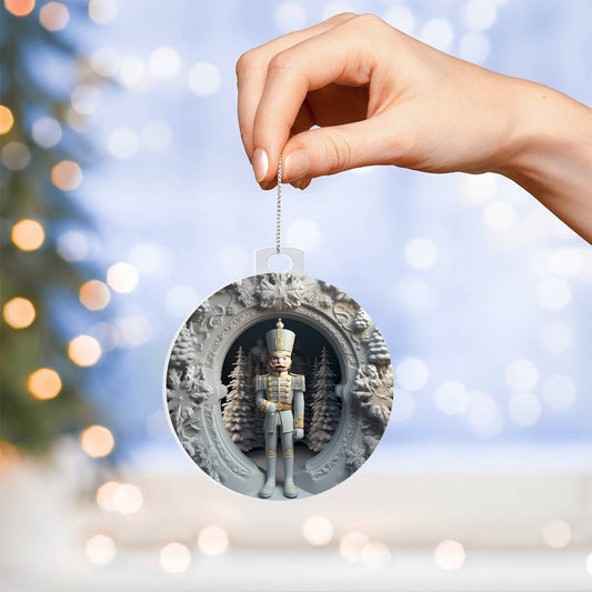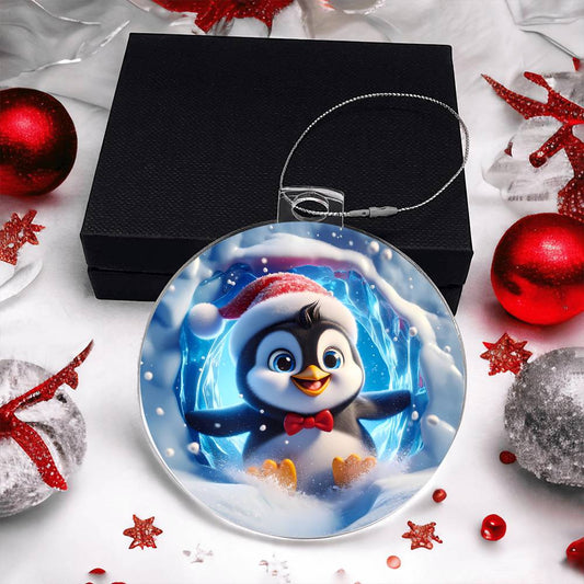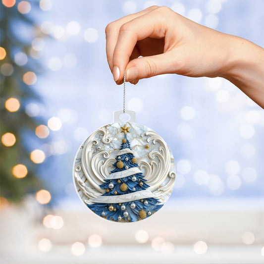 Blue Snow Covered Village Acrylic Christmas Ornament