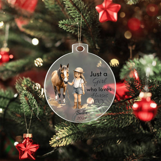 Horse Ornament Personalized, Girl Horse Christmas Ornament Gift, Riding a Horse Rider Christmas Ornament, Custom Names Horse Lover Gift