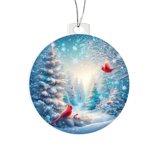 Cardinals Winter Wonderland Acrylic Christmas Ornament - Festive Holiday Decoration