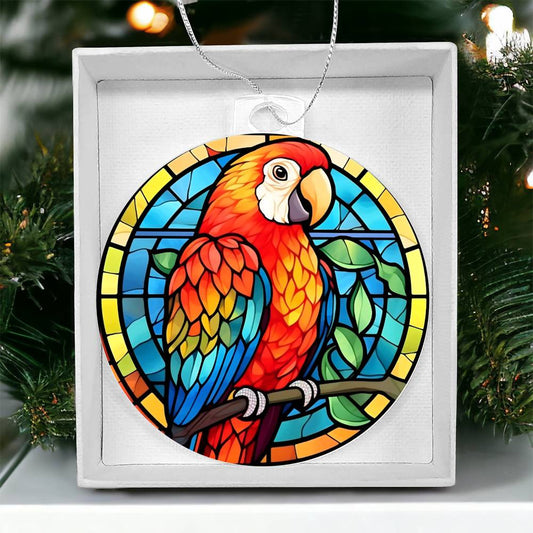 Festive Stained Glass Parrot Christmas Tree Ornament - Unique Handcrafted Design for Bird Lovers