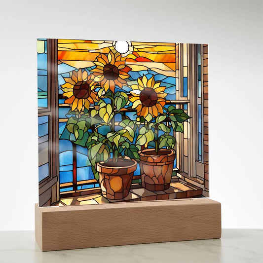 Sunflower LED Wall Art - Faux Stained Glass Home Decor Christmas Gift