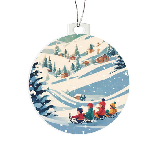 Kids Sledding Christmas Ornament - Handmade Winter Adventure Decor or Gift