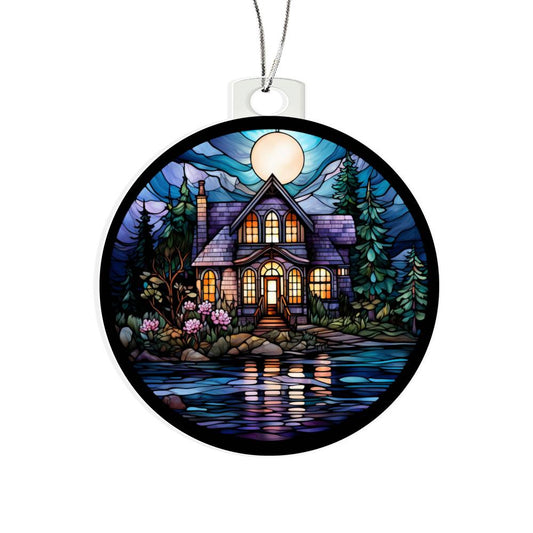 Lake House Stained Glass Christmas Ornament - Decorative Handcrafted Holiday Decoration