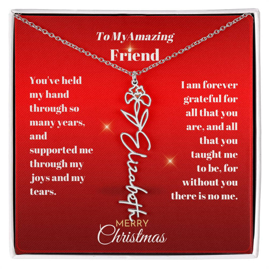 Merry Christmas Friend Personalized Birth Flower Name Necklace Gift