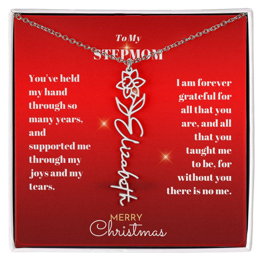 Merry Christmas Stepmother Personalized Name Birth Flower Necklace