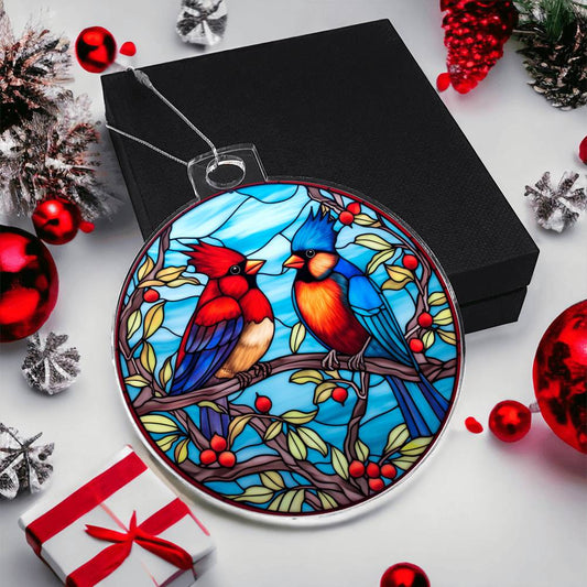 Cardinal Birds Stained Glass Effect Acrylic Christmas Ornament