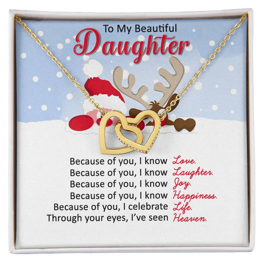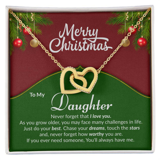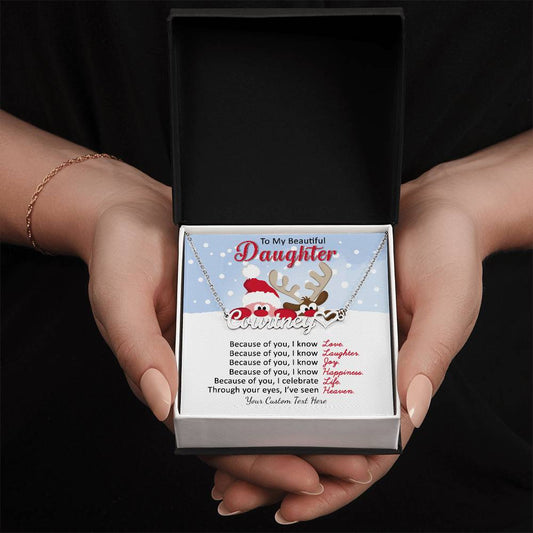 Merry Christmas Daughter - Personalized Name Necklace with Heart