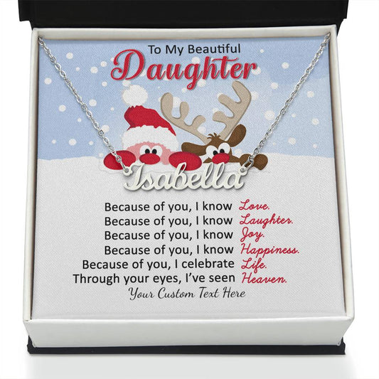 Santa and Reindeer Christmas Name Necklace for Daughter